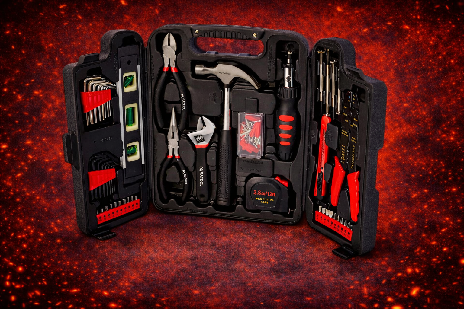 No es solo una caja de herramientas: es la solución ideal para cualquier reparación en el hogar, automóvil, oficina o taller. Con 129 piezas esenciales, tendrás siempre a mano la herramienta correcta para cada tarea: montaje de muebles, arreglos eléctricos simples, ajustes mecánicos, instalaciones y mucho más.Además, su organización inteligente y su maletín resistente permiten trabajar con comodidad y rapidez. ¡Un solo kit para todas tus necesidades de mantenimiento!